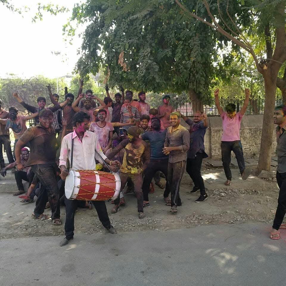 कांग्रेस के लोकसभा प्रत्याशी रहे प्रहलाद गुंजल के निवास पर भी होली का उत्साह देखते ही बन रहा था। सुबह से ही समर्थकों और कार्यकर्ताओं का तांता लगा रहा। ढोल की थाप पर नृत्य करते कार्यकर्ताओं ने जमकर गुलाल उड़ाया और एक-दूसरे को रंगों से सराबोर कर दिया।